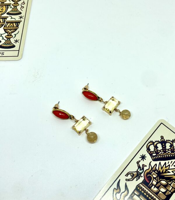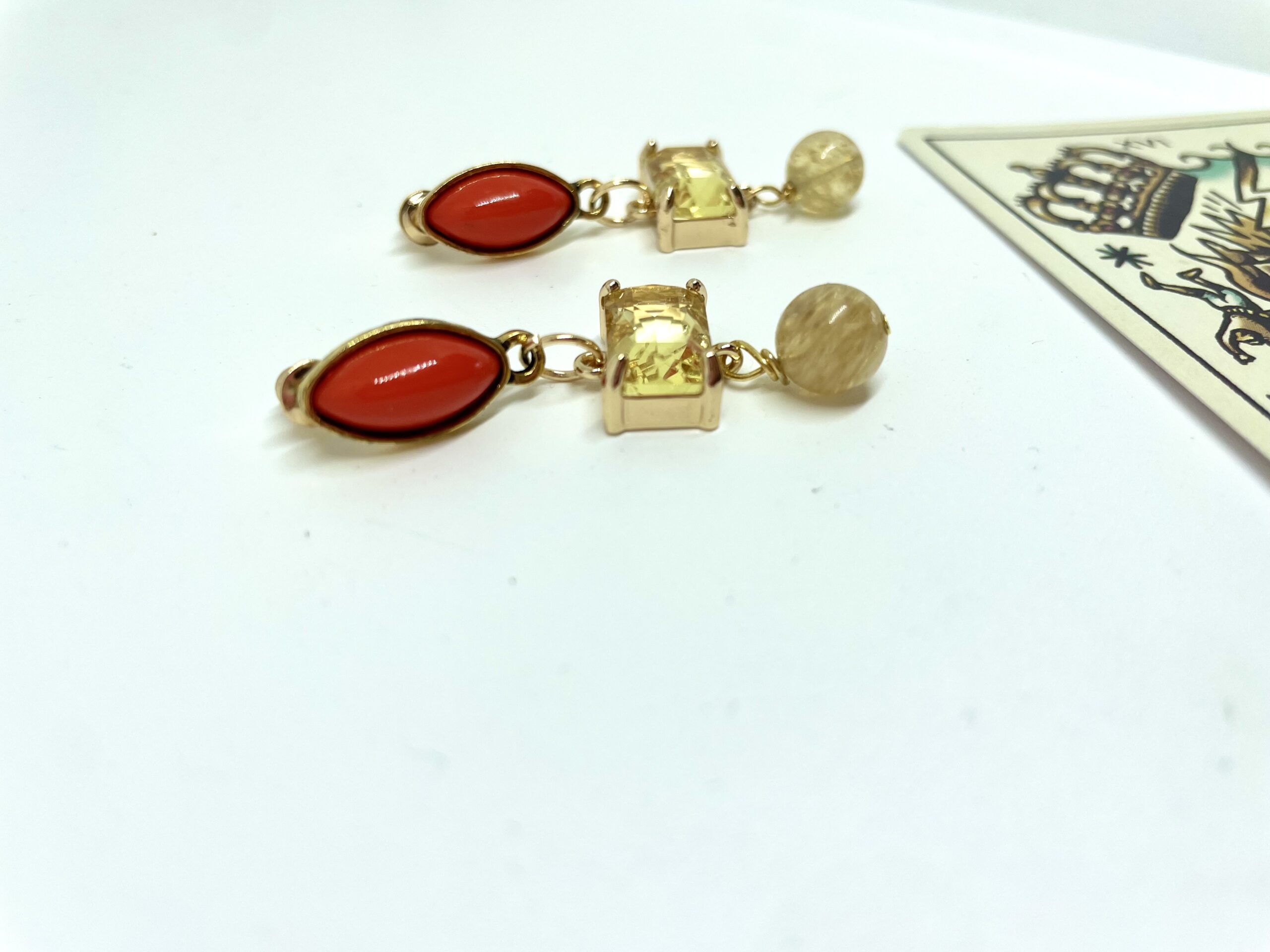 Orecchìni con bottone dorato e pietra , Swarovski e perla di quarzo citrino